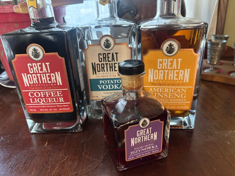 GREAT NORTHERN DISTILLING in Stevens Point (top) taps deeply into the area’s Polish heritage, making a traditional Central European Potato Vodka ($34 for 750ml). Potatoes are far less efficient starch conveyors than grain, which packs about three times much starch per pound. But they make a vodka that has a rich, silky mouthfeel and a sweet finish, which makes it a beautiful base for a martini. The distillery also makes a Jezynowka ($18 for 200ml) - a blackberry flavored brandy that’s a far cry from the syrupy sweet mass-produced competition in this niche. The earthy, bright intensity of fresh berries comes through in every sip, and its 65 proof strength packs a punch.
