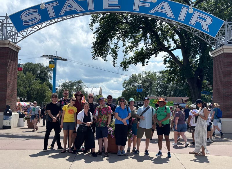 This State Fair expedition is always a Herculean and/or Sisyphean task, and we're lucky to have a world-class crew of eaters (and writers, and photographers, and draw-ers) - to help us pull it off. We're incredibly grateful to our crew, including Stacy Brooks, M.C. Cronin, Becca Dilley, Joshua Feist, John Garland, Jeanne Lakso, James Norton, Amy Rea, WACSO, and Nathan Wold. And thanks to special guests Brandi Brown and Andy DuCett for joining the crew!